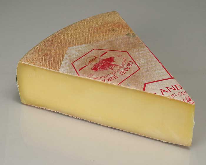 Made from raw cow milk in the French-Comte of Jura. Aged about 6 mo. it is firm, dense, and bursting with big Swiss flavor. Natural rind with straw color interior. One of best cheeses to use in fondue.